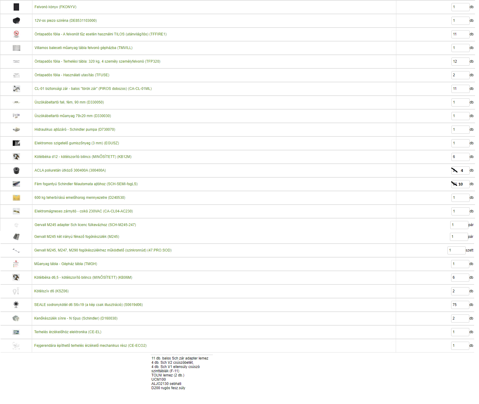 Elvégzendő munka: vezérlés, ütközők, , csúszók, kenők, hajtómű, fülkeajtó, zárak, sebhat, fogókészülék, feszítősúly, kötelek cseréje, pumpák, behúzók, üvegek, táblák szükség szerinti cseréje, nagytakarítás pincei aknaajtó komplett cseréje
